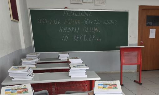 Okul rehberlik servisi tarafından tüm sınıfların yazı tahtalarına "HOŞ GELDİNİZ, 2025-2026 EĞİTİM-ÖĞRETİM YILIMIZ HAYIRLI OLSUN, İYİ DERSLERLER" şeklinde yazı ile öğrencilerini karşılayacak.